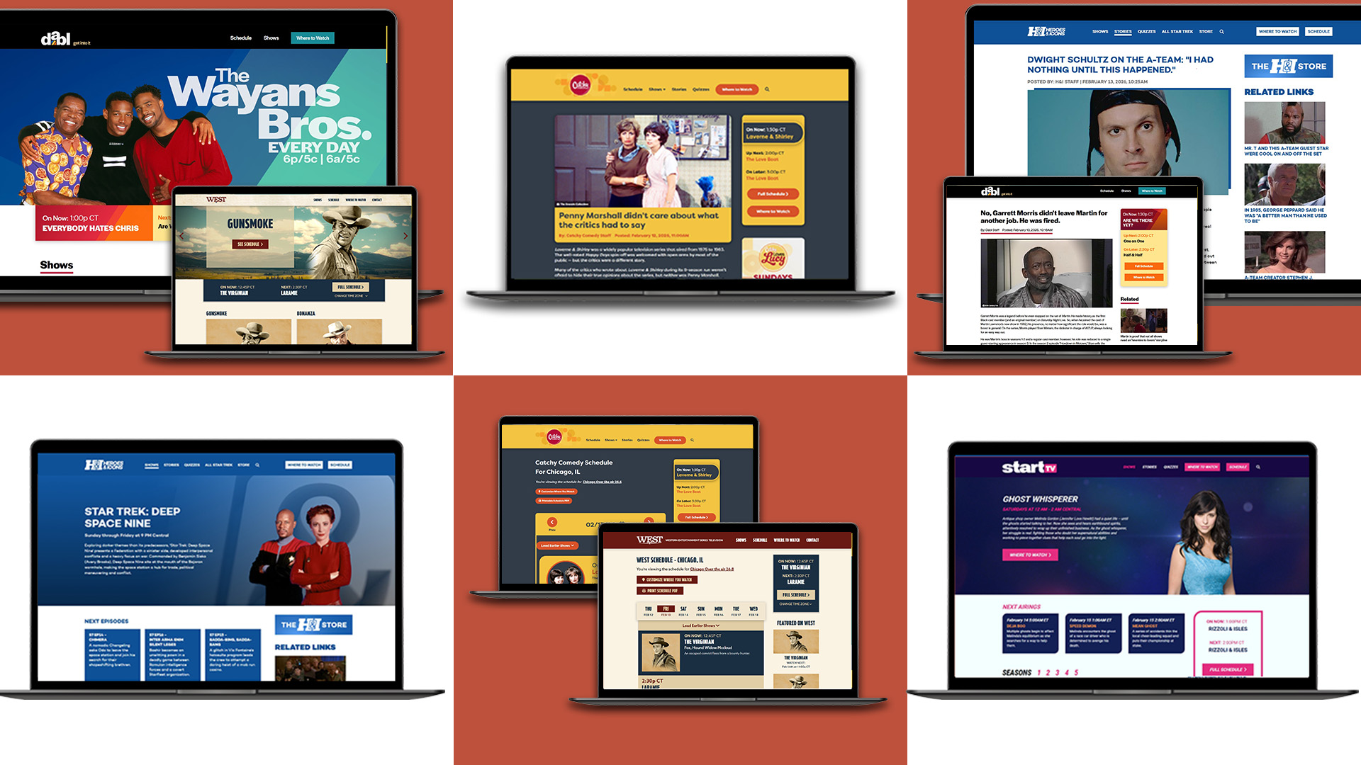 The template established a consistent structure across all sites while allowing each network to express its identity through brand-specific visual elements.